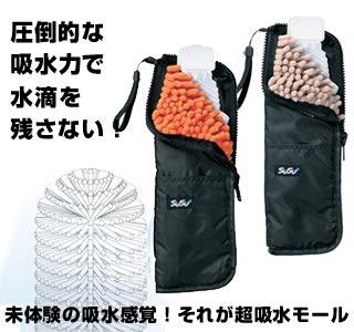 マイクロファイバーのモール糸は吸水性に優れていますので、ぬれた傘やカバンの水分をすばやく吸水します。