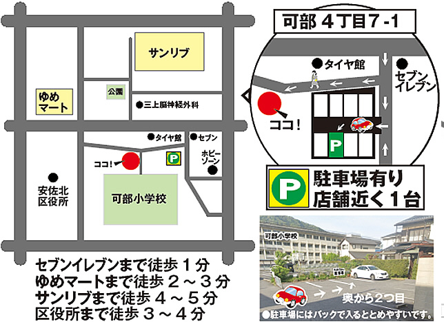 ■お車の方へ、店舗から徒歩30秒に1台分の駐車場スペースがあります。