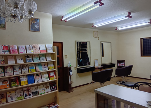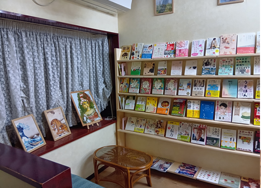 ■待合いエリアは、ブックカフェイメージで本がたくさんあります。